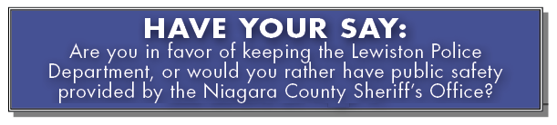 Why wait for a referendum? Tell us how you feel right now! Are you in favor of keeping the Lewiston Police Department, or would you rather have public safety provided by the Niagara County Sheriff's Office? Click here and vote to keep the LPD, or eliminate the department.