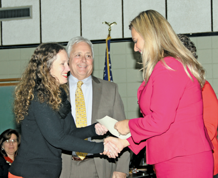 •Ashli Dreher was presented with the Excellence in Teaching Award by the New York State National Council for Exceptional Children. As part of the honor, the district received $650 from the National Education Association, which Dreher presented to the board. Dreher was the state Teacher of the Year in 2014.