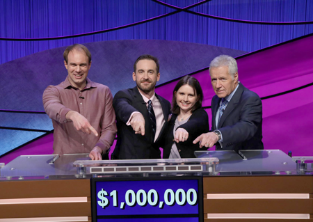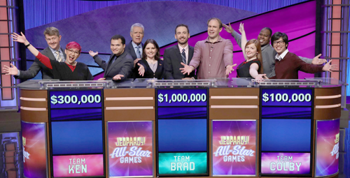 After a 10-day battle between the brawniest brains on television, Team Brad – Brad Rutter, Larissa Kelly and David Madden – won the “Jeopardy!” All-Star Games, presented by Consumer Cellular. Team Ken – Ken Jennings, Matt Jackson and Monica Thieu – finished second, while Team Colby – Colby Burnett, Pam Mueller and Alan Lin – came in third. Team Brad will share a $1 million grand prize, while Team Ken will split $300,000 and Team Colby will take home $100,000.