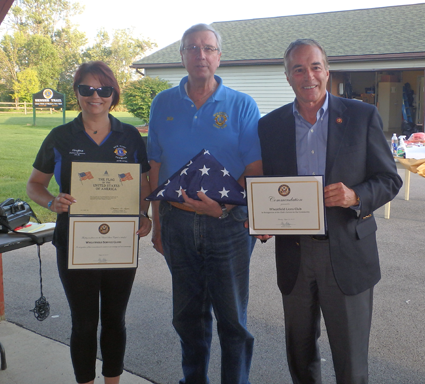 Awards were given to three individuals. Paul Wilson was awarded a pin for his 45 years of membership. Roberta O’Toole was honored with the Robert J. Uplinger award for her work securing a grant for the Wheatfield Lions. Brad Anderson, a friend from Canadian Lions was given a “Hands Across the Border” pin.