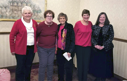 Diane Brodfuehrer (secretary) Shirley Joy (treasurer), Grace Leadersorf (installation officer), Pat Anderson (president) and Julie Forcucci (vice president).
