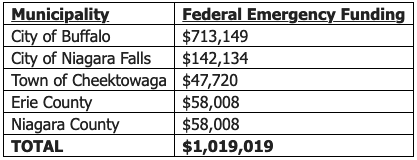 Erie and Niagara Counties as well as Buffalo, Niagara Falls and Cheektowaga slated for federal funding