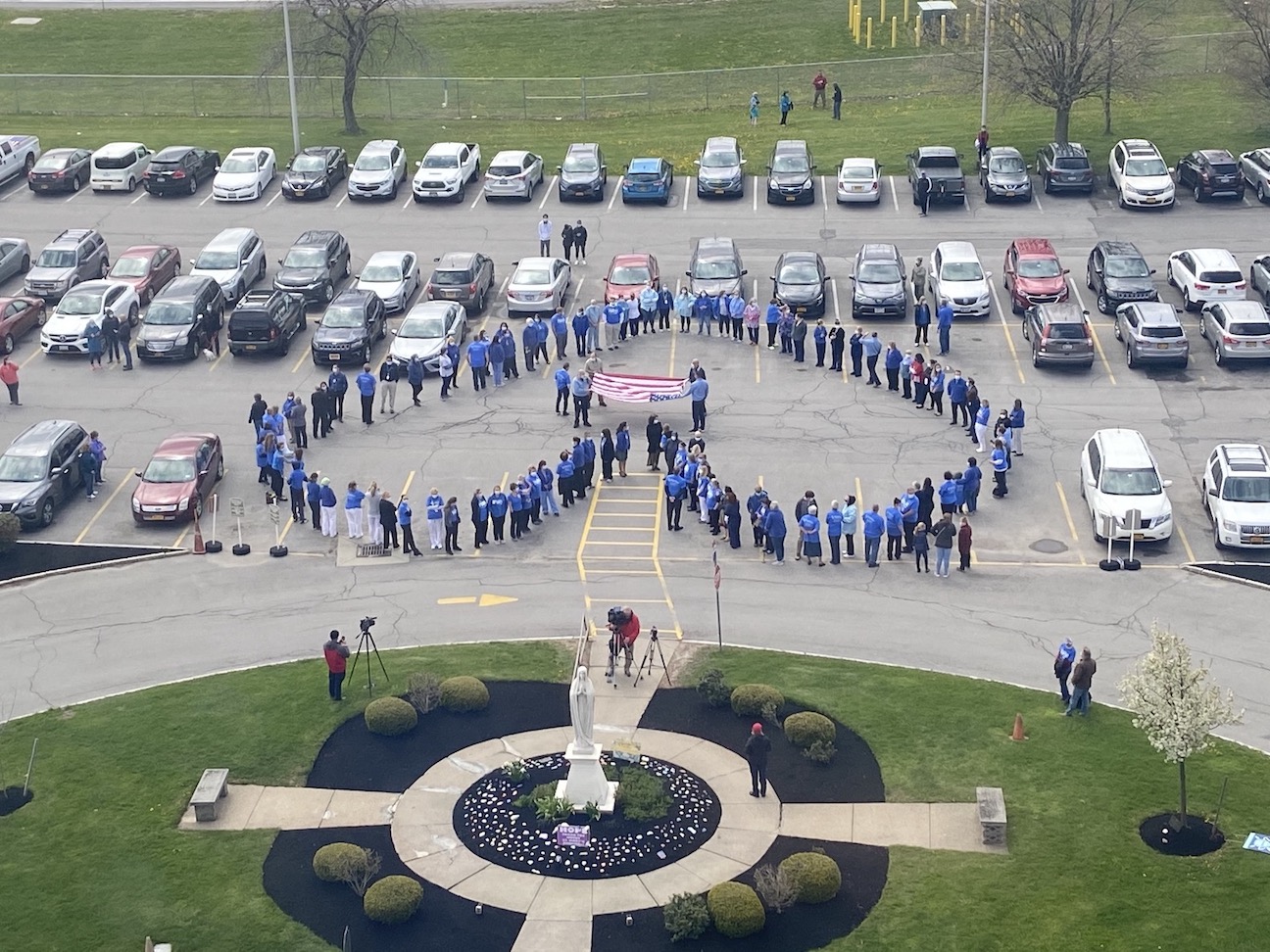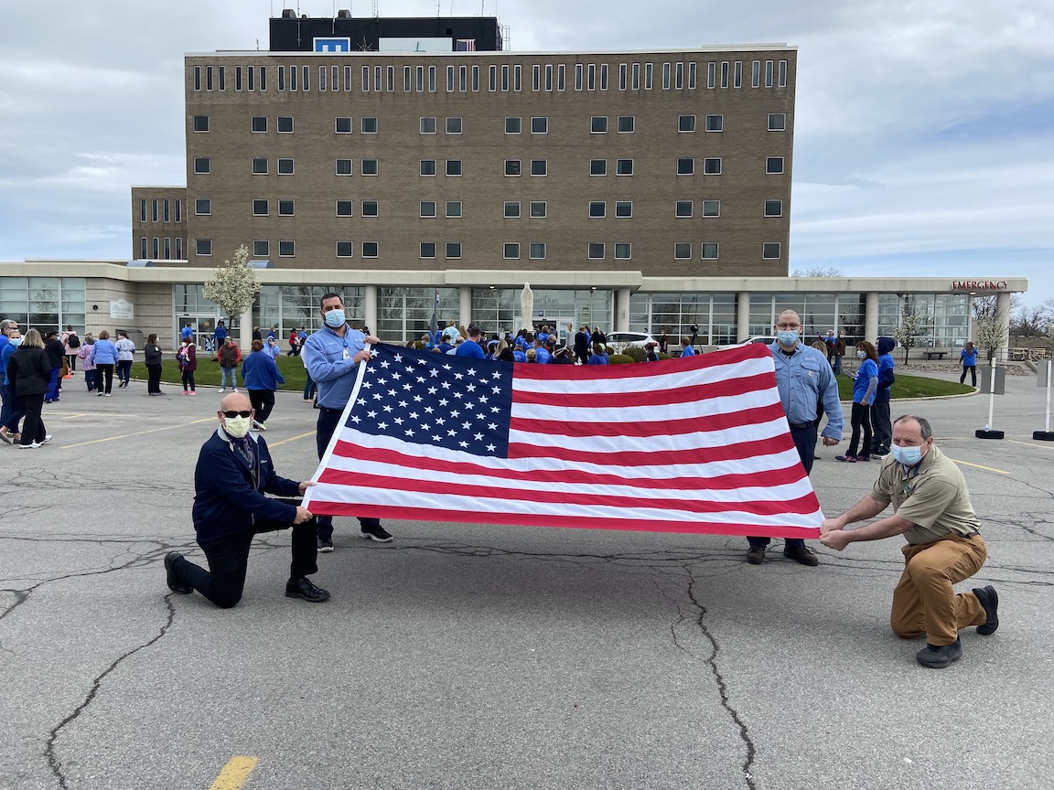 Mount St. Mary’s staff formed a heart with the American flag in the middle of it to thank the Air Force for the flyover. (Courtesy of Mount St. Mary’s Hospital)