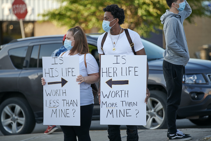 Dozens of people descended upon downtown Lockport on Monday to hold a peaceful rally and encourage racial equality.