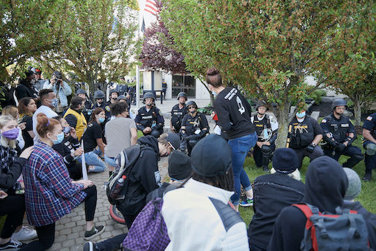 The Lockport Police Department and New York State Troopers actually joined together with crowd members and Niagara Peacemakers to take a knee and deescalate any tension arising from the law enforcement’s presence. Shortly after, the crowd started to dissipate, and law enforcement officers left the site.