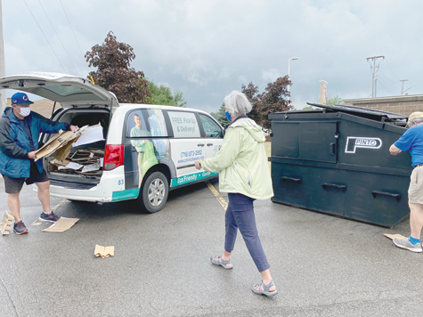 To improve traffic flow on July 11, Pinto Dumpsters of Grand Island donated one of its Dumpsters for the empty cardboard boxes. As a “thank you” for donations, Colvin Cleaners of Kenmore donated gift cards for each customer.