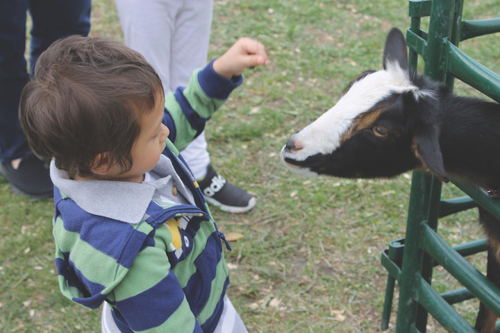 Lennox Keefe, 3, holds a piece of straw in front of a goat at “Food & Fun” Saturday on Oct. 10 at Kelly’s Country Store.