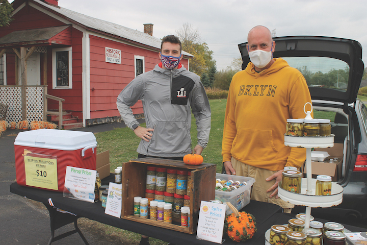 Karrie Buell, left, and Mark Buell staff their booth selling pickles – sweet and dill – at “Food & Fun Saturday” on Oct. 9 at Kelly’s Country Store.