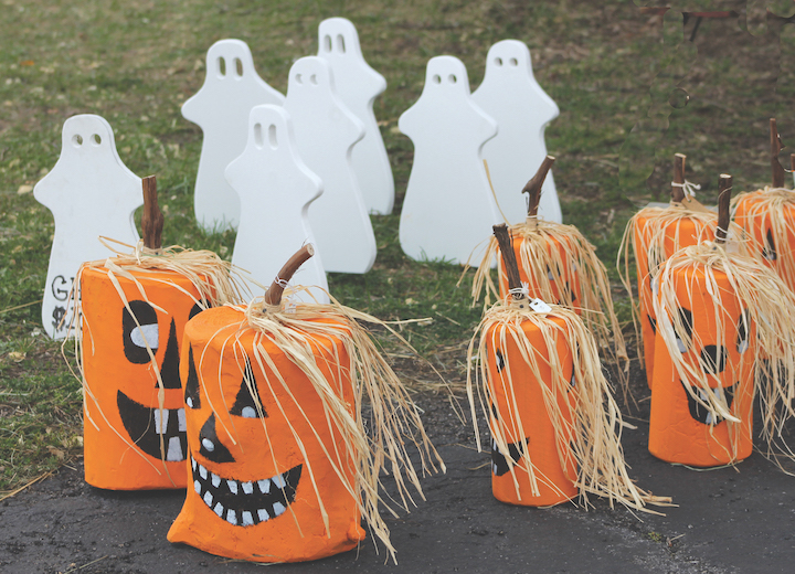 Pumpkins and ghosts created from logs by Jim Luesch of Cambria were on sale at Food & Fun Saturday on Oct. 10 at Kelly’s Country Store, 3121 Grand Island Blvd.