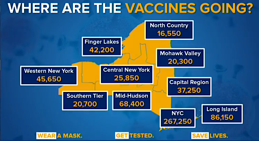 Bolstering this effort, the first 346,200 doses of the Moderna vaccine are expected to begin arriving in New York, with an additional 120,000 doses of the Pfizer vaccine expected later this week.