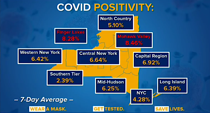 On Sunday, Niagara County had 127 new positive coronavirus cases (7.7% of 1,642 tested). The seven-day rolling average was 7.8%.