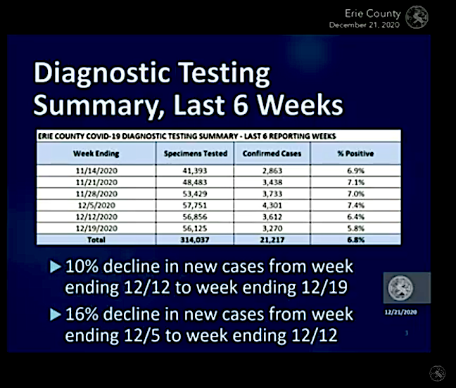 On Sunday, Erie County had 388 new positive coronavirus cases (6.6% of 5,887 tested). The seven-day rolling average was 6%.