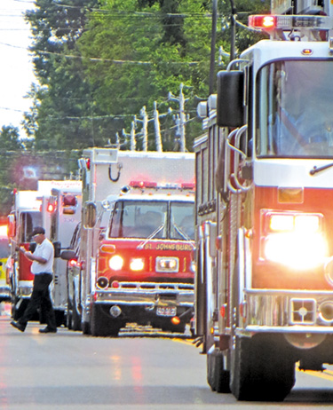 About 1,000 members of fire companies built a tent city behind Town Hall, participated in training exercises, played firemen games, did demonstrations for the public, as well as held a parade and a memorial service. (photos by Danny Maerten and Tom Downing)
