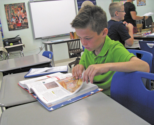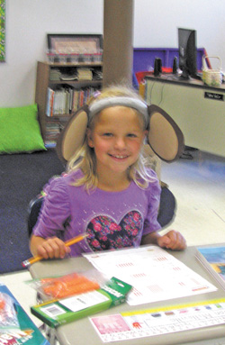 Photos show students at St. Peter's Lutheran School, 6168 Walmore Road in Wheatfield. A group of wiggly kindergarteners in Lynanne Jacob's class show off their new school shoes. A sixth-grader in Debbie Whalen's class gets to work. Cara Delp's second graders have a monkey/jungle theme this year, and when they are good listeners, they get to put on their monkey ears.