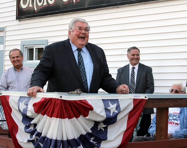 Niagara County Clerk Wayne F. Jagow addressed Pendleton's community Thursday as town, county and state officials dedicated a historic marker that celebrates the founding of Pendleton. Looking on are State Sen. George D. Maziarz and County Legislator Tony Nemi.