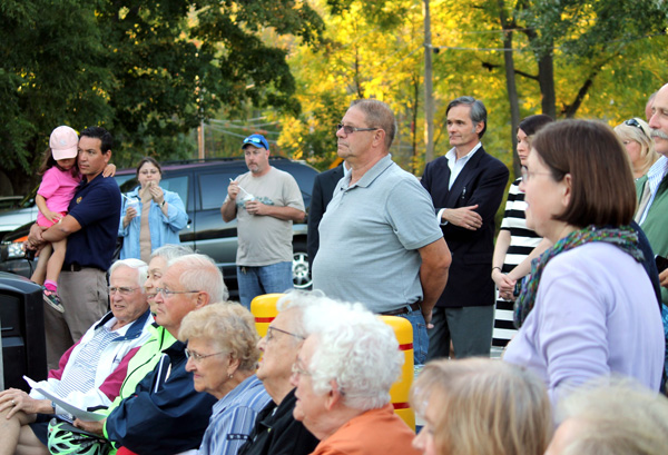 A large crowd of Pendleton residents gathered at Uncle G's Ice Cream to witness the dedication of a nearby historic marker celebrating the 1821 founding of Pendleton Village, a small portage on the Erie Canal constructed before Lockport's Flight of Five opened the Canal to Albany-Buffalo traffic.