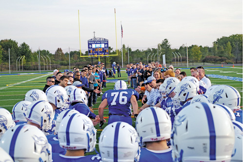 "As Marv Levy used to say, 'Where would you rather be than right here, right now?'" said Grand Island Central School District Athletic Director Jon Roth during a ceremony held at halftime of the Vikings' home opener against Williamsville South. The event, billed as Friday Night Under the Lights, packed the stands and had spectators four-deep along the fence and into the end zone area. The Friday attendance dwarfed a typical Saturday afternoon crowd even at 5 p.m. for the 7 p.m. kickoff.