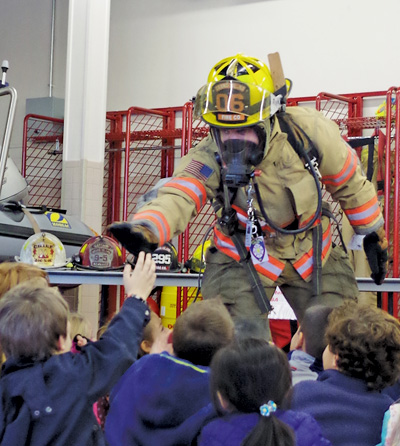 Firefighter Seth Kozek welcomed Sidway Elementary School students to fire headquarters Thursday. The GIFC held its annual Fire Prevention Open House Thursday night after the Dispatch went to press. (photos by Larry Austin)