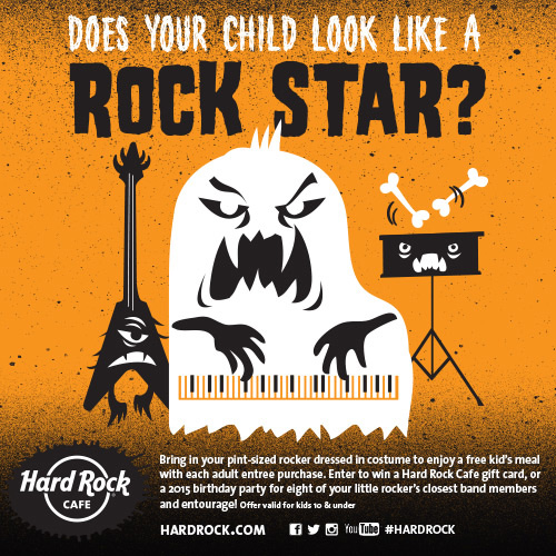 Guests can bring their favorite pint-sized rock star to the cafe dressed in their best costume for a chance to win a Hard Rock Cafe gift card or a 2015 birthday party for eight of the rock star's closest band members and entourage.
