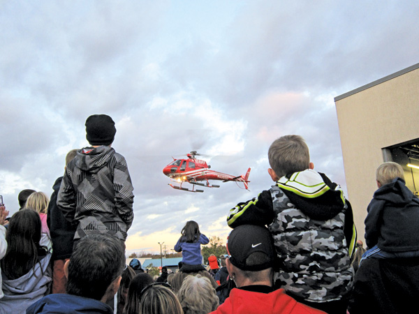 A helicopter from the Erie County Sheriff's Office lands at fire headquarters. (photo by Colleen Rebmann)