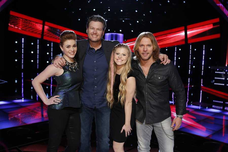 "The Voice": Team Blake members Reagan James, Blake Shelton, Jessie Pitts and Craig Wayne Boyd. (NBC photo by Trae Patton)