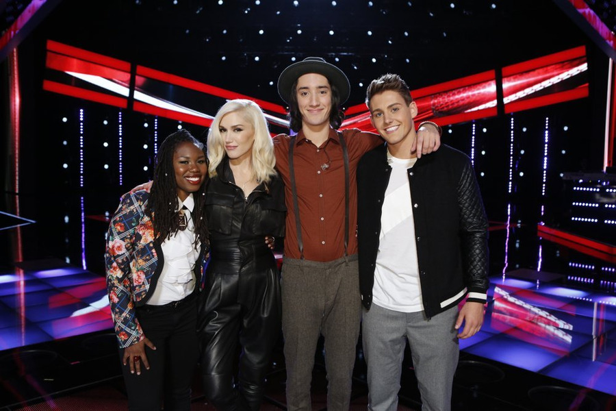 "The Voice": Team Gwen members Anita Antoinette, Gwen Stefani, Taylor John Williams and Ryan Sill. (NBC photo by Trae Patton)