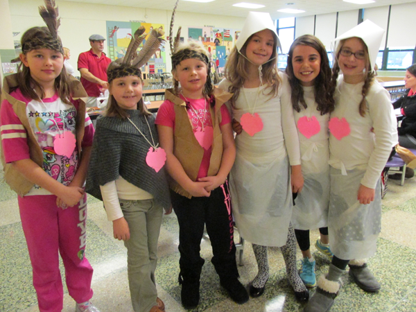 For 14 years, the first Thanksgiving has been celebrated at Huth Road Elementary School by students in Celeste Angelo's fifth grade, together with second-graders from Frances Burczynksi's class.
