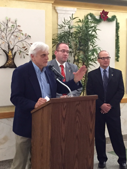 Pictured, from left to right, are Allen Schug (St. Vincent de Paul Society), Michael Filicetti and Tony Majka.