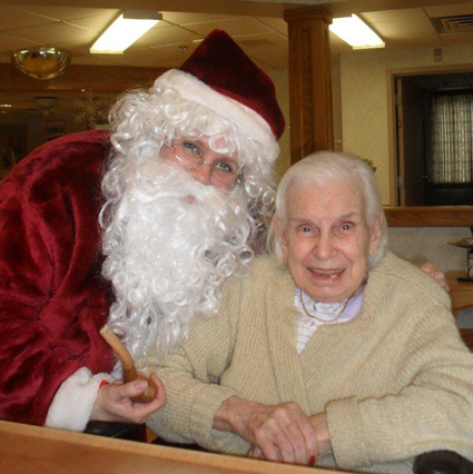 Above, Northgate resident Anne Karre, formerly of North Tonawanda, shares some Christmas secrets with the big guy.