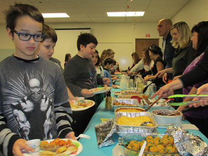 Every year, fourth-graders research their family background and then write a paper describing their family origins. The culmination of the project is the Heritage Luncheon, with donated food reflecting different nationalities. Parents act as servers, and parents, teachers and children enjoy tasting foods from many countries.