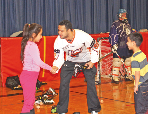 Steenhuis acted as master of ceremonies and talked to the students about his own experience playing lacrosse in high school and how, despite starting at an older age than most, he persevered to become a professional.