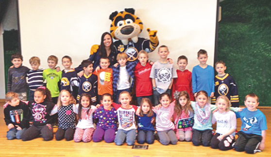 The Buffalo Sabres mascot Sabretooth recently paid a to Niagara-Wheatfield's Errick Road Elementary School. The students have been learning about what traits make up good character and sportsmanship and doing an outstanding job, according to school counselor Liz Antonelli.