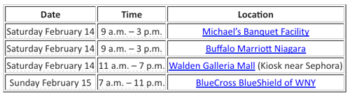BlueCross BlueShield will offer enrollment events through the weekend. Taking place across Western New York, the events offer access to the Internet, a short overview of the NY State of Health Marketplace and face-to-face interaction with BlueCross BlueShield's licensed benefit consultants to answer questions and help through the enrollment process. Walk-ins are welcome or individuals can call 1-800-888-5407 to pre-register.