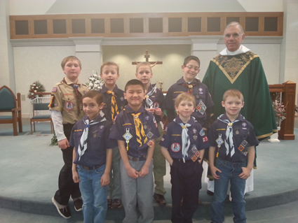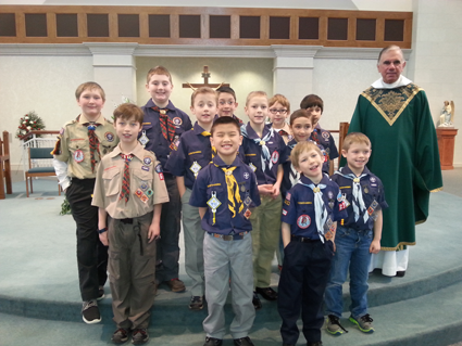 Scout Sunday for Cub Scouts and Boy Scouts was celebrated at the 9 a.m. Mass Feb. 8 at St. Stephen R.C. Church.