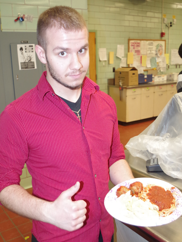 In a bout matching five hearty appetites fighting to see who would be first to finish eating two cups of spaghetti, two scoops of sauce and two 3-ounce meatballs, high schooler Matt Studley came away the winner.
