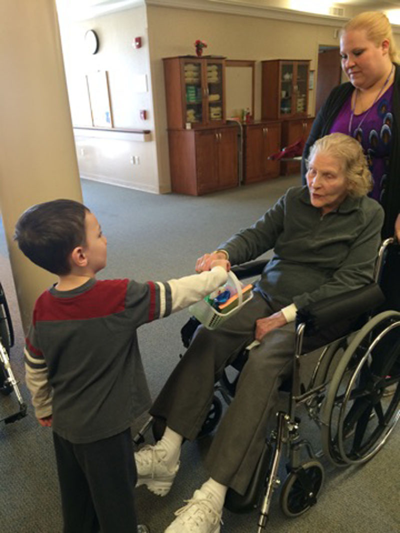 Children from the Mount St. Mary's Child Care Center visited residents of the Our Lady of Peace Nursing Care Residence to deliver Easter baskets and treats.