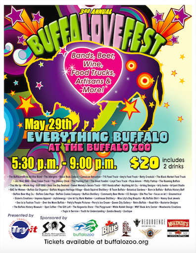 The Buffalo Zoo has announced the lineup for its third annual BuffaLoveFest, an event featuring all things Buffalo. BuffaLoveFest will take place from 5:30-9 p.m. Friday, May 29, at the Buffalo Zoo, 300 Parkside Ave.