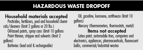 "All residents with hazardous materials in their homes or garages are encouraged to drop off the materials at one of two collection events being sponsored by Erie County. We must do everything we can to ensure these materials do not end up in landfills or our waterways. Please take the time to dispose of materials properly and protect our community's environment," Hardwick said.