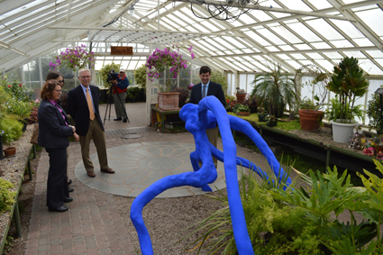 Above, Poloncarz later joined Whyte, Swarts and members of the public inside. The county executive helped to unveil the new pieces of public art by Canadian artist Shayne Dark, which will be on display through September thanks to the collaborative efforts of the Albright-Knox public art initiative and the Buffalo and Erie County Botanical Gardens.
