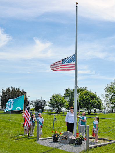 Brownie Scouts conduct the flag ceremony during the 2014 Memorial Day ceremony.