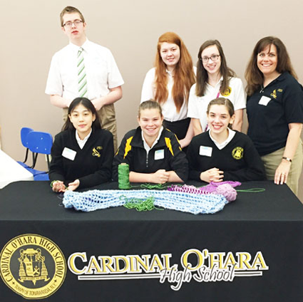 Freshman and sophomore class officers represented the school, knitting prayer shawls to be donated to a nursing home and wrist rosaries, which will be given to each incoming freshman as a gift.