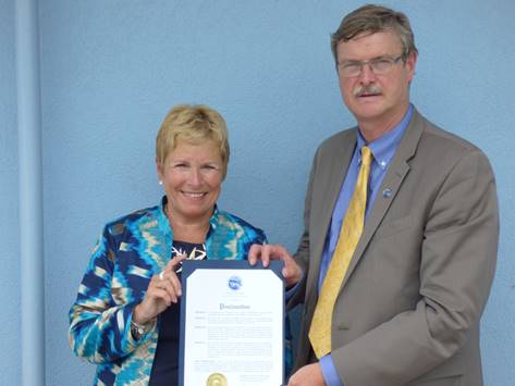 Celebrating 50 years: Aquarium of Niagara Executive Director Gay Molnar with Niagara Falls Mayor Paul A. Dyster.
