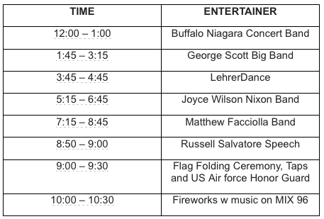 Erie Canal Harbor Development Corp. today announced its schedule for Canalside and the Outer Harbor's Independence Day celebrations, which will take place Saturday, July 4. These free events will feature some of Buffalo's best talent, children's activities, food and a fireworks display, presented by Russell Salvatore, over the Buffalo River. Salvatore arranged the patriotic musical soundtrack that will accompany the fireworks display and also be synched on the MIX 96 FM radio station. The event's rain date is Sunday, July 5.