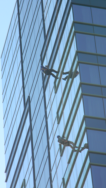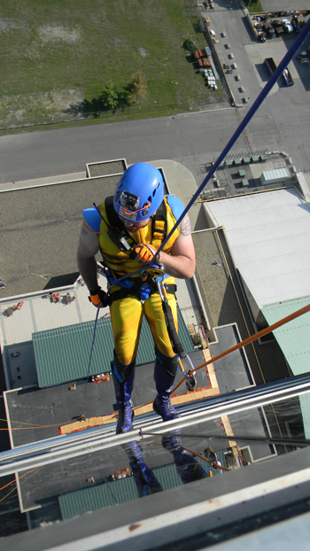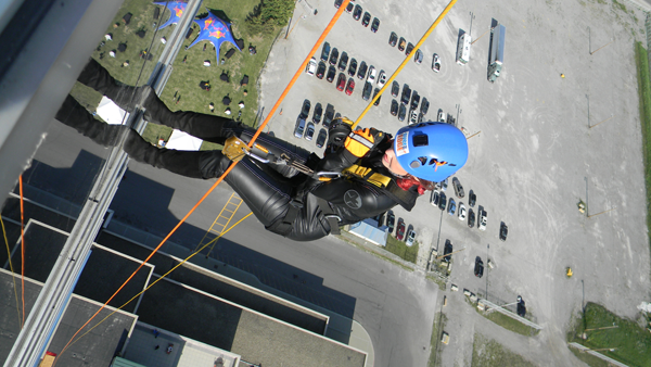 Sherri and Tom, members of the nonprofit WNY Superheroes Alliance, donned superhero costumes of the Black Widow and Wolverine for their stunt. They're shown on the casino roof and "Over the Edge." (Photos by Terry Duffy; see more in our gallery)