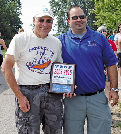 Moments before the event, Joe Menter, chairman of the event and the Town of Grand Island recreation director, presented Paul Leuchner an award for his part in creation of "Paddles Up." Leuchner was chairman of "Paddles Up" for the first nine years of its existence and is the event's founder in his time working with the Niagara Greenway Commission. "Paddles Up" is the signature event of the Niagara Greenway Commission.