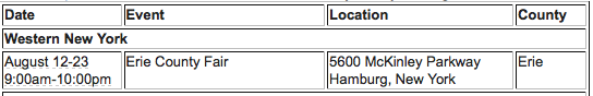 Local events include: