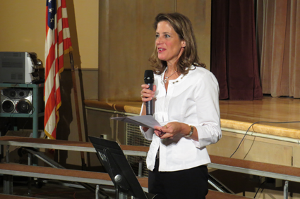 Pattie Frentzel spoke Thursday to the crowd at Kaegebein.