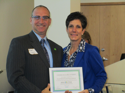 Grand Island Superintendent of Schools Dr. Teresa Lawrence accepted the honor from Mark Cassell from Siemens, which sponsors this program for the WNY STEM Hub.