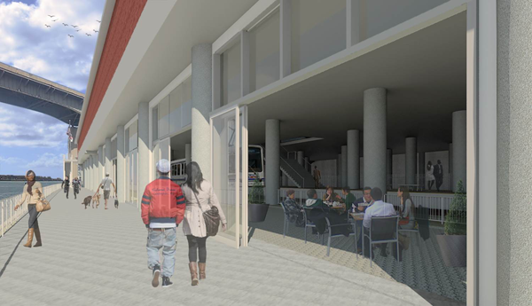 In addition to a new platform on the first floor of the DL&W Terminal, the Buffalo River alternative includes stair and elevator access to the second level of the terminal, a pedestrian bridge spanning South Park Avenue, public access to the Riverwalk and the option for future extensions.