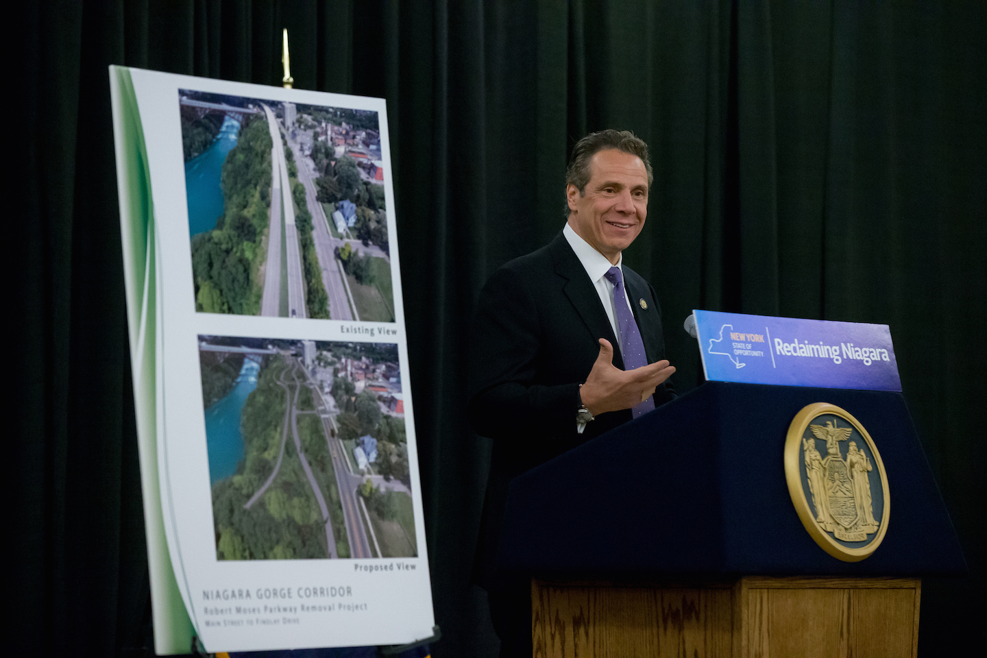 Empire State Development President, CEO and Commissioner Howard Zemsky said, "The Robert Moses Parkway removal project will allow for direct recreational access to the Niagara River, and the region will greatly benefit from removing this physical and psychological barrier that has impeded the Niagara Gorge and Niagara Falls neighborhoods for decades."